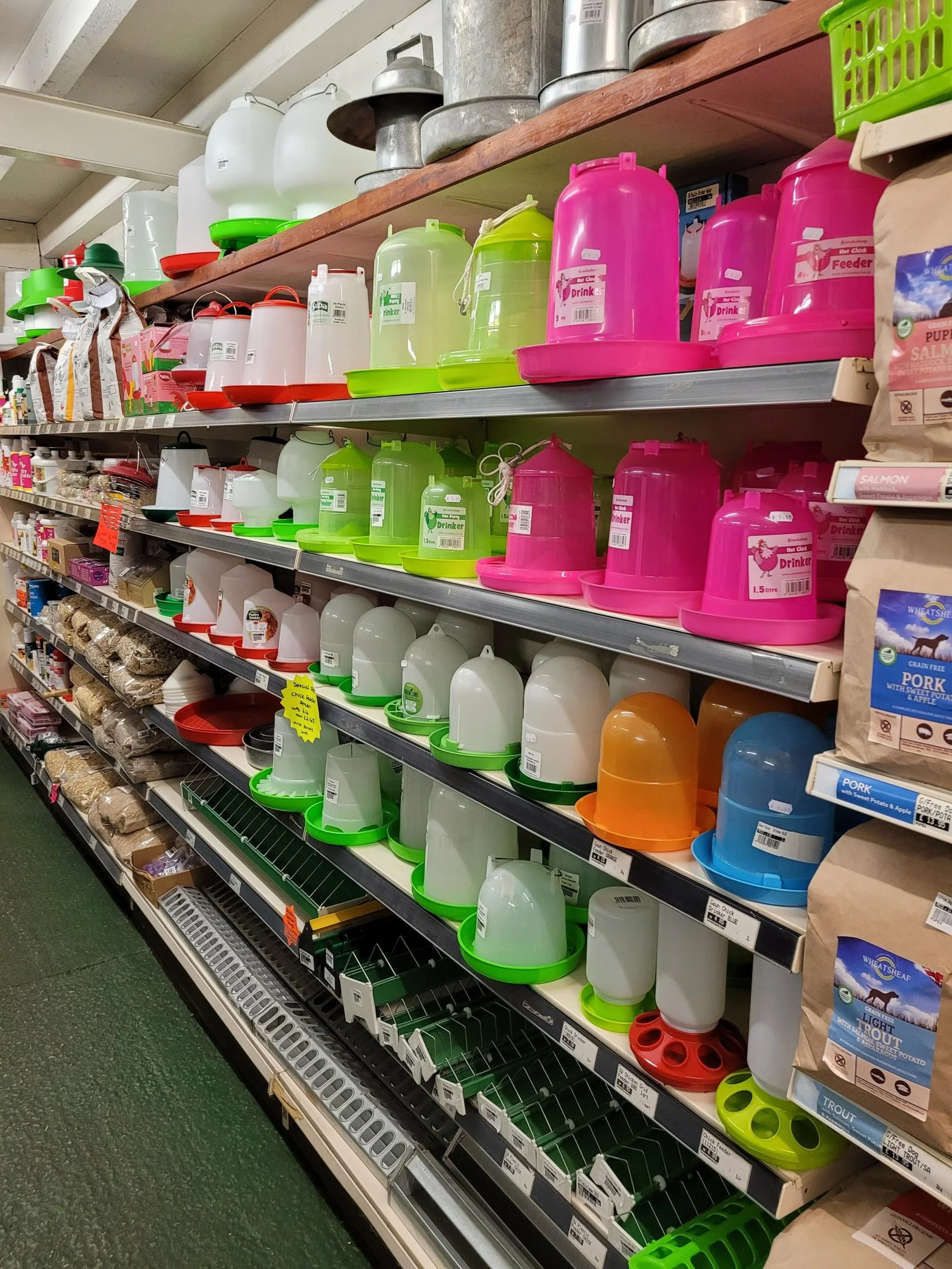 We sell a collection of boredom breaker enrichment toys to help keep your crew occupid day to day, heat lamps, feeders, drinkers and health care essentials, supplements, plus much more.